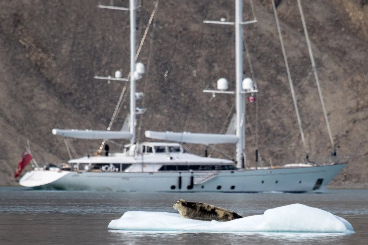 /Here a sleepy seal lying on a floe as Rosehearty steams up the Fjord on the way to the west Glacier in Croker Bay