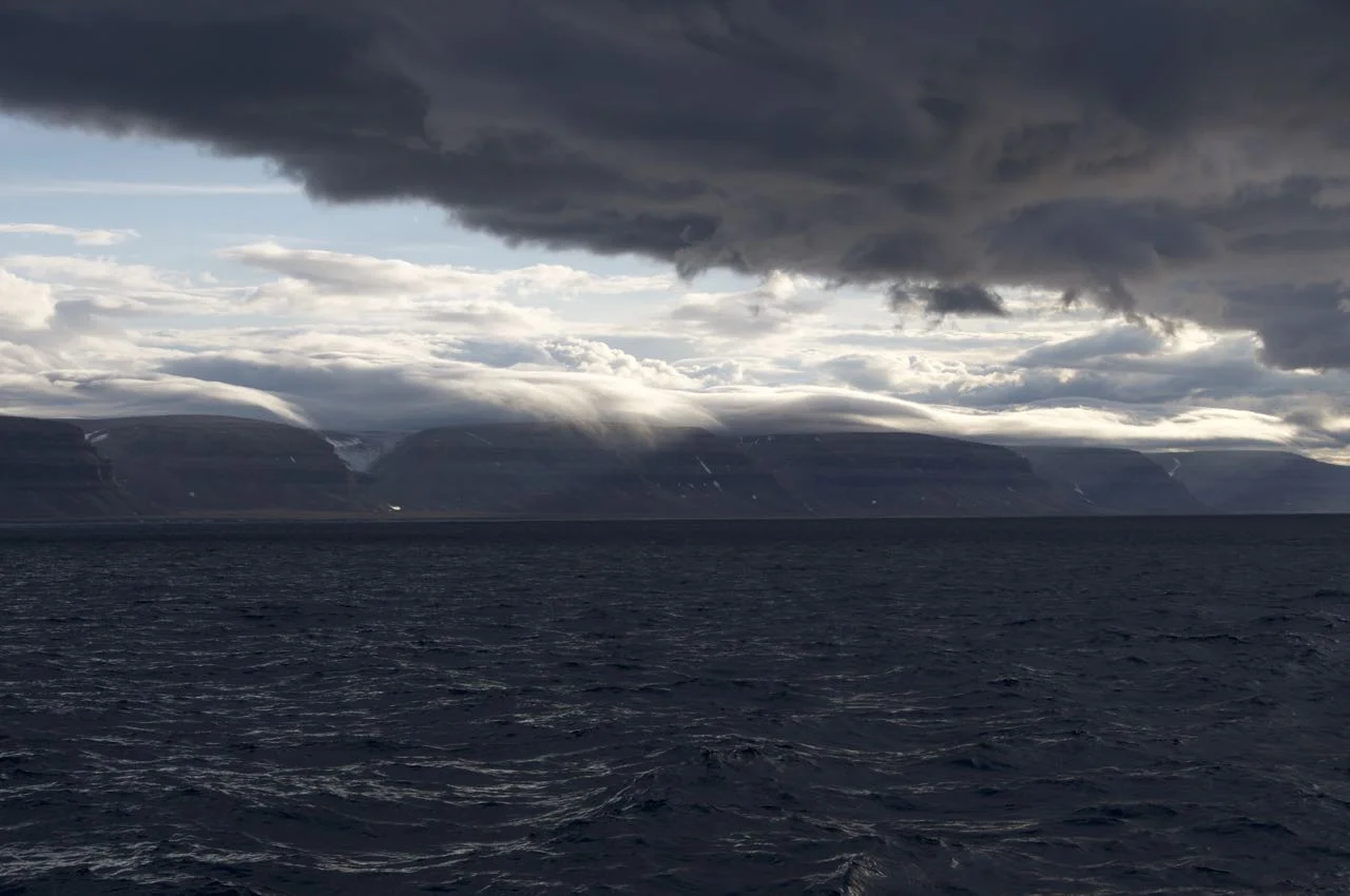 /From Bellot Straits we Went North up Peel Sound. Thankfully Ice free. We had 20kts of wind behind us and for the 1st time in a while the sun set.. We crossed the top of Somerset and then down Admiralty Inlet the Southerly wind peaked around 40kts but the seas were flatish. The wind was enhanced by the Katabatic action developed by the very high hills we were sailing by. Some Cliffs were 1000m meters high…